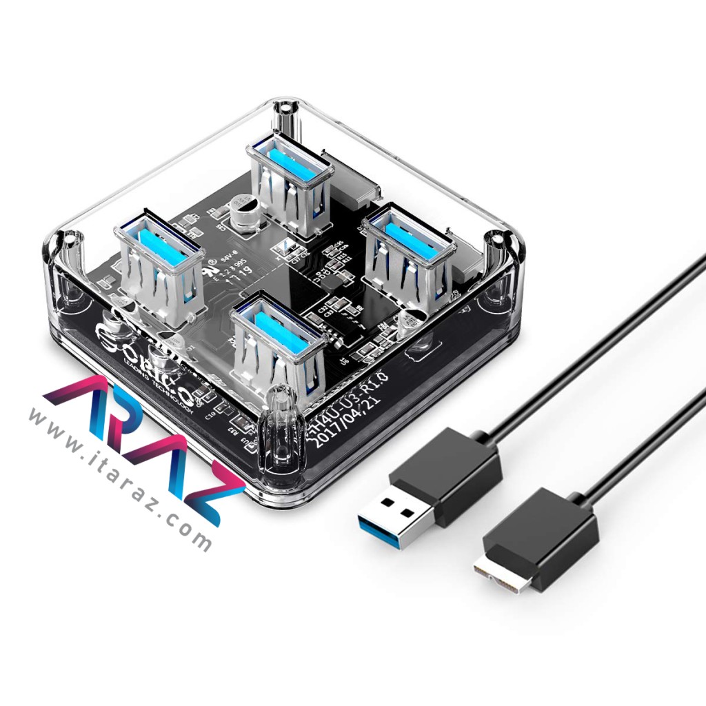 هاب «MH4U-U3» محصولی از برند «اوریکو» (Orico) است. این هاب USB بدنهای شفاف دارد که برای آن از پلی کربنات استفاده شدهاست. در این هاب USB تعداد 4 عدد پورت USB 3.0 وجود دارد که میتوانید با استفاده از دو درگاه ورودی آن برق موردنیاز برای این درگاهها را تأمین کنید. با استفاده از هاب MH4U-U3 اوریکو میتوانید بر محدودیت پورتهای USB 3.0 غلبه کنید و از یک پورت به 4 پورت USB 3.0 برسید. یکی از مزایای این هاب، برخورداری از چیپست VL817 است. این فناوری امکان شارژ و انتقال اطلاعات هوشمند را فراهم میکند. استفاده از این آداپتور، عملکرد بینقص هاب و امنیت دستگاههای شما را تضمین میکند. برای اتصال هاب به کامپیوتر، یک کابل USB به همراه MH4U-U3 ارائه میشود که طول آن 30 سانتیمتر است و طول بسیار خوبی برای اتصال به کامپیوتر دارد. این محصول شرکت اوریکو دارای قابلیت شارژ آفلاین است و برای شارژ کردن دستگاههایتان لازم نیست که حتماً این دستگاه را به کامپیوتر متصل کنید.